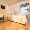 Întins pe două niveluri, apartamentul oferă trei dormitoare confortabile și două băi complet echipate, dintre care una privată, deservind dormitorul de la parter. Livingul spațios este inundat de lumină naturală, iar ferestrele mari dezvăluie panorama unică a centrului istoric.